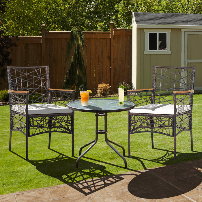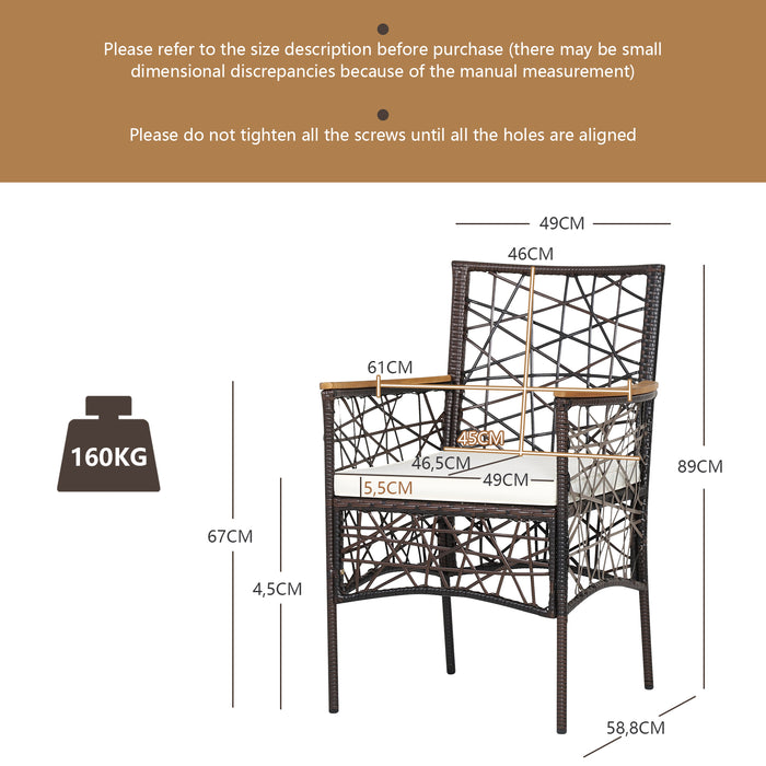 Our patio chairs are constructed with all-weather PE rattan woven over a corrosion-resistant steel frame, ensuring that they stand the test of time against the elements. The addition of non-slip foot pads enhances the chairs' stability, preventing any undesired movement and protecting your flooring from scratches.