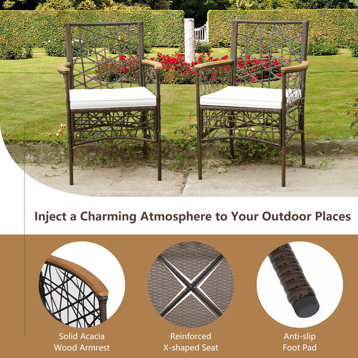 Welcome to the epitome of outdoor relaxation and style. Our carefully crafted PE rattan patio dining chairs offer the perfect fusion of comfort and durability, designed exclusively for your al fresco dining moments. Whether you're sipping your morning coffee or enjoying a meal under the stars, these chairs provide an inviting atmosphere for any outdoor setting.