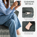 Each piece of this bistro set is crafted to ensure a comfortable lounging experience. The plush cushions on the deep armchairs provide a soft and inviting seating option, perfect for long conversations or quiet moments outdoors. The convenience is heightened with cushion covers that are both removable and machine-washable, ensuring the set remains pristine with minimal effort.