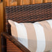 Indulge in prolonged lounging sessions thanks to the generously thick seat cushions that grace each chair. These cushions come enveloped in stylish removable covers, allowing for easy washing, while a chic striped bolster cushion adds an extra layer of comfort and a dash of elegance to each armchair.