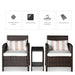 Materials: This set boasts a combination of sturdy steel, resilient PE rattan, plush polyester cushioning, and sleek tempered glass.