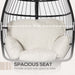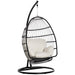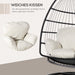 Styled with an eye-catching hollow webbing pattern, the egg-shaped basket boasts an endearing look that enhances any space. The color palette of classic black and cream white ensures that the chair complements any décor, proving that style need not be sacrificed for comfort.