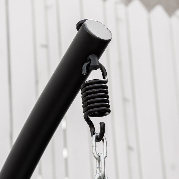Sturdiness is at the core of this swing chair’s design, with a hanging stand made of solid galvanized metal, complemented by a durable metal chain for secure suspension. Stability is further enhanced with the addition of protective foot pads, ensuring your floors remain pristine.