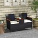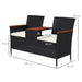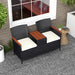 Rattan Two-Seater Loveseat with Integrated Wood-Top Table - Elegant Black Finish - Perfect for Couples or Small Patios