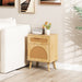 Discover the charm of our mid-century modern rattan nightstand - a perfect blend of style and practicality. This exquisitely designed piece brings a touch of rustic flair with its rattan-decorated drawer and door, and smooth, clean lines that elevate any space. Not just stunning, it offers a myriad of storage options with a spacious tabletop, easy-glide drawer, and ample cabinet space. Built to last on solid wood legs with non-slip pads, and featuring a child-safe anti-tipping kit, this piece offers peace of mind. Whether you’re lighting up your bedroom, accenting your living room, or organizing your study, this nightstand masters versatility and style! If you are looking for such a product, do not hesitate to buy it! Bohemian-Chic Design: The rattan nightstand features a rattan-decorated drawer front and door for a distinctive appeal. It blends the eclectic charm of Bohemian style with the clean lines of mid-century modern aesthetics, being the perfect addition to your living space. Practical Storage Solutions: The modern bedside table offers ample storage with a spacious tabletop for displaying items or placing a lamp. Together with a glide drawer for smaller items, and a cabinet for larger storage needs, it is a functional piece for any room. Built to Last with Solid Wood Legs: The Boho end table is supported by solid wood legs, ensuring stability and durability. Plus, its legs are fitted with non-slip foot pads, which can enhance stability and protect your hardwood floor. Safety First: The rattan-decorated accent table comes with an anti-tipping kit to prevent accidents. This feature provides the peace of mind and ensuring the safety of children and pets in the household. Multi-Purpose Functionality: While designed as a nightstand, its stylish design and practical features make it versatile for use in various settings. The versatile unit also works well as a side table in the living room, or even a printer stand in study.