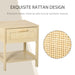 Introducing an exquisite addition to your bedroom furnishings, this bedside table seamlessly blends functionality with a touch of natural aesthetics. The highlight of this elegant piece is a beautifully woven rattan accent set within the spacious drawer, exuding a sense of earthy charm. This chic table is ideal for your nighttime essentials and fits harmoniously with various interior decor settings. Now, let's explore the aspects that make this more than just a piece of furniture.