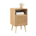 Rattan Nightstand - Storage Equipped, PE Rattan Decorated Door Feature - Ideal for Home Decor and Organization