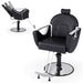 Experience comfort and versatility with our barber chair, designed with a reclining range of 106° to 140°. The high-density sponge filling and premium PVC leather surface provide superior comfort and relaxation. This barber chair is built to accommodate a full spectrum of client needs, thanks to the adjustable seat height and detachable headrest with 6 optional positions. Moreover, enhanced functionality is evidenced in its 360° swivel design, making it simple for stylists to access all angles. Stability and durability are provided by its sturdy electroplating metal frame and large metal base. All in all, our hairdressing chair is suitable for various occasions, such as barber shop, beauty salon, cosmetic studio, and tattoo shop, etc. Selected Materials for Comfort: The salon chair features a thick sponge padded seat that offers superior comfort and support. Covered in premium PVC leather, the barber chair provides a luxurious look and feel while ensuring easy maintenance.Ergonomic & Reclining Design: The hairdressing chair features a reclining backrest ranging from 106° to 140°, allowing easy adjustments to suit any treatment or client preference. Moreover, the ergonomic design and integrated armrests provide tailored support for clients.Adjustable Height & Headrest: Tailor each session according to client needs with a 12 cm adjustable height range and a detachable headrest featuring 6 optional positions. Thus, the hair styling chair enables optimal positioning for various client heights. Stable Frame & Sturdy Hydraulic Pump: Made of a sturdy electroplating metal frame, the barber chair greatly improves stability and support. The large metal base and heavy-duty hydraulic pump provide strong support of 150 kg weight capacity. Modern Swivel Barber Chair: The modern hair styling chair swivels a full 360°, which allows for easy access to the client from any angle. Moreover, this versatile barber chair will make haircuts, styling, tattoo, and other beauty services more convenient.