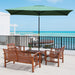 With its clever tilting mechanism, the umbrella allows for effortless adjustments. As the sun traverses the sky, you can easily change the angle of the parasol to maintain constant protection and enjoy uninterrupted leisure under its generous canopy.