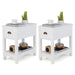 Colour: Black/White/Grey Material: MDF, Rubber Wood Product Dimension: 56 x 33 x 59 cm (L x W x H) Net Weight of Two: 22 kg Weight Capacity of Top: 20 kg Weight Capacity of Drawer: 5 kg Weight Capacity of Bottom Shelf: 10 kg Package Includes: 1 x Nightstand 1 x Instruction Manual