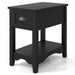 This is our simple but fashionable end table which adds functionality to any room in your home. With the retro appearance and delicate handle, the end table can totally match the decor of your home. The side table has a capacious drawer and a shelf at the bottom to provide large storage space and keep your rooms stay neat. What’s more, this table is durable and stable which has a long service time. At the top and bottom, you can put your crafts and furnishing articles. In the internal, you can store personal items and so on. This multifunctional table can be placed in living room, bedroom and study as a nightstand or chair side table. It will surely bring you a cozy life. Selected Premium Materials: Our end table is made of high-quality MDF board and solid wood so it is sturdy and durable. The surface of the table is covered with ash, which makes the table full of luster and it won’t be damaged, scratched or rotted easily. The four legs are made of pure rubber wood, which makes them stronger and last longer. Large Storage Space: Our end table has spacious storage space with a deep drawer and a shelf at the bottom. It can be placed beside your bed or sofa. And you can display some commonly used items such as desk lamp, remote control and so on. This end table greatly increases the use of space especially for small units or apartments. Elegant and Concise Appearance: Wooden furniture in retro style brings a natural atmosphere to your urban life. The end table has a delicate sense of gloss and shows the quality of high-grade. This nightstand is suitable for interior decoration and it is also the excellent choice for people who pursuit of quality. High Security and Stability: This table has round corners, which largely improve the safety for using. Cambered handle is easy to push and pull the drawer, and the protruding part will not scratch the body. These points are especially important for families with young children. The shape is designed in H-shaped which is stable and won’t shake easily. Easy to Assemble and Clean: You can easily put all the parts together by following our installation instruction in a short period of time. Our chair side table is lightweight so you can move it to anywhere you want. Because of the smooth and flat surface, it is easy for you to clean with a wet cloth.