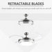 The unique retractable blades of our ceiling fan tuck away discreetly when the fan is not in use, reducing the collection of dust and transforming it back into a streamlined light fixture. This innovation allows you to maintain the aesthetic of your space without the continuous visibility of fan blades.