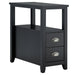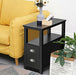 Are you looking for an elegant side table for your living room or bedroom? This stylish compact nightstand is ideal for your limited space, providing extra storage options. The sturdy legs and the durable material give more stability to the table, offering long years of enjoyment. You can use it as a side table in your bedroom, or use it as a small coffee table beside your sofa in the living room and sitting room. Not much curves or carvings, this chair side table highlights itself with the latest minimalist style and chic color. This chair side table can perfectly blend with your room décor. The simple-structured piece comes with all necessary parts, easy to set up under detailed instructions. If you are looking for a side table like this, do not hesitate to place an order! Large Storage Space to Meet Your Needs: This bedside table has 1 open shelf and 2 drawers to store your items. You can put books, fruit, lamp, clock and other objects on the shelf or tabletop, and two drawers provide much space for your personal belongings. Multi-purpose Cabinet: This retro-inspired look is perfect for using it in the living room, bedroom and study, and can be perfectly matched to any decorating style. More importantly, it is a versatile cabinet, so you can use it as a nightstand, end table, corner table, storage cabinet, sofa table, etc. Reliable Materials and Stable Construction: Our bedside table is made of P2 grade MDF and engineered wood which is solid and sturdy. This material is not easily damaged and can be used for a long time. In addition, the bedside table has four non-slip pads under feet that can protect your floor from being scratched. Intimate and Convenient Design: The dimensions of this table are 60L x 30W x 61H cm and the net weight of it is 13 kg, so it is small in size and very light in weight that you can put it anywhere you want to. What's more, smooth running drawer slides and metal handles make sure the drawer can be easily pulled out. Easy to Assemble and Maintain: The assembly instruction of this nightstand is clear and easy to understand. And all the parts in the package are marked with a number, which can guide you to finish a quick installation. Smooth surface makes it easy to clean with a dry or wet cloth.