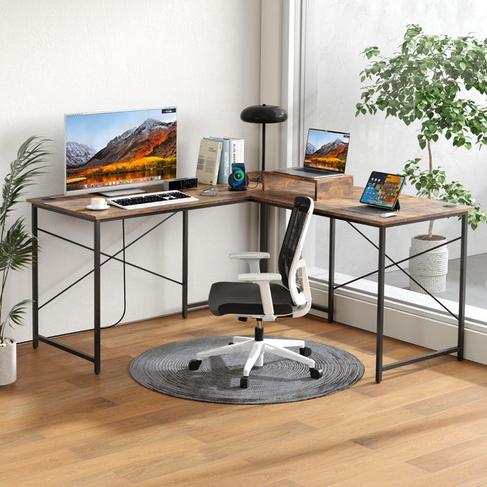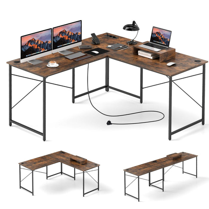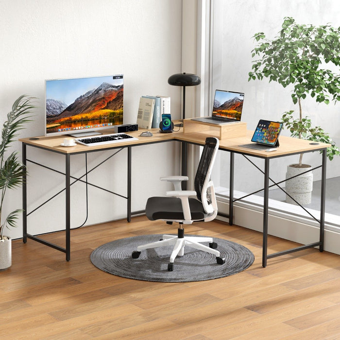 Colour: Rustic Brown/Natural Materials: Engineered Board, Metal Dimensions of L-Shaped Desk: 150 x 150 x 74 cm (L x W x H) Dimensions of Straight Desk: 240 x 60 x 74 cm (L x W x H) Dimensions of Host Stand: 40 x 24 x 10 cm (L x W x H) Weight Capacity of Desktop: 100 kg Weight Capacity of Host Stand: 15 kg 2 AC Outlets: 250V/13A 1 USB Port & 1 Type-C: 5V/3.1A Power Cord Length: 150 cm Net Weight: 24.5 kg Package Includes 1 x L-Shaped Computer Desk 1 x Instruction Manual