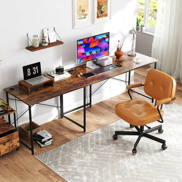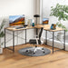 This desk can easily switch from an L-shape to a straight long desk, fitting seamlessly into any room layout. It features a built-in power strip with 2 AC outlets, a USB port, and a Type-C connection, facilitating easy charging for all your devices. Additionally, the home office desk comes with a movable CPU stand that can double as a monitor stand if needed, offering a versatile setup. Constructed with a heavy-duty metal frame and reinforced X-shaped bars, it offers reliable support. Enjoy ample desktop space for effective multitasking with the reversible corner desk! Adaptable Layout Design: Our reversible L-shaped desk offers effortless switching between a corner desk and a straight desk layout. It accommodates diverse spatial arrangements in home offices, making it ideal for any task from work to gaming. Handy Built-in Power Strip: The computer desk is equipped with a built-in power strip that includes 2 AC outlets, 1 USB port, and 1 type-C port. This convenient feature allows for simultaneous charging of multiple devices, ensuring that your essential tools are fully powered and ready for use. Generous Desktop Space: The spacious desktop area provides ample space for spreading out projects, organizing materials, and accommodating multiple monitors or peripherals. The corner desk also features cable management holes to maintain a clean and efficient workspace. Versatile CPU Stand: Our gaming desk comes with a mobile CPU stand that can be easily adjusted along the desk and also used as a monitor stand to create additional space. This feature enhances the desk’s functionality, catering to various setup needs. Robust and Stable Structure: Crafted with a heavy-duty metal frame reinforced with X-shaped bars, the home office desk ensures maximum stability and can support up to 100 kg. Additionally, the adjustable foot pads compensate for uneven floors, providing a firm footing.