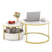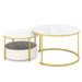 The smaller side table’s X-shaped base further reinforces the frame. Premium details for stability, both end tables come with adjustable foot pads. With dual tabletops and a removable storage basket, these cocktail tables provide ample storage for items like magazines and blankets. The nesting design allows for space-saving options, making them ideal for different living spaces. Easy maintenance is ensured with the open base and smooth surfaces, allowing for convenient cleaning. Versatile Table Set: The coffee table set of 2 includes a big 80 cm table and a smaller 60 cm table. Perfectly paired for a cohesive look, they can also be used separately to meet diverse needs, showcasing flexibility and functionality in any home decorations. Robust Metal Support: The cocktail table set is notable for its solid metal structures, which support up to 88 kg. The small coffee table, in particular, boasts an X-shaped base that enhances stability. Both tables come with adaptable adjustable foot pads. The Outstanding Organizer: Featuring dual tabletops, the side table set offers ample space to hold your coffee and snacks during relaxation. Furthermore, the removable fabric storage basket is ideal for organizing magazines, toys, or blankets. Space-Saving Nesting Design: Perfect for adapting to different space requirements, these tables can be fully nested to conserve space or half-nested to expand surface area. The coffee table set is ideal for living rooms, bedrooms, apartments, etc. Easy Maintenance: Keep your home tidy with the circle end table set, where the big coffee table features an open base for convenient sweeping underneath. Both tables boast smooth surfaces that make wiping up spills a breeze.
