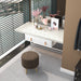The ottoman is designed with a cushioned top, enveloped in a linen-like fabric that provides both aesthetic appeal and supreme comfort. This versatile furnishing effortlessly adapts to any space, functioning as a cozy footrest in your living area, an inviting shoe-change stool in your foyer, or an elegant dressing stool in the bedroom.