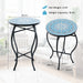The eye-catching display of a sophisticated mosaic tabletop fused with an elegantly curved black metal frame brings a remarkable touch of chic to any outdoor setting. Uniquely designed, this table offers the intrigue of imagination, transforming from an end table to a plant stand, depending on your need.