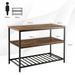 The sleek silhouette of this kitchen island boasts three spacious shelves designed to accommodate your cookware, utensils, and ingredients with ease. The expansive tabletop, measuring a generous 48 inches by 24 inches, provides a sprawling area suitable for meal prep or casual dining. With practicality blended seamlessly with an industrial aesthetic, this piece will elevate the look of your kitchen while keeping essentials within arm's reach.