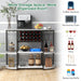 The wine rack table’s rustic brown hues and bold black metal framing coalesce to create an industrial chic aesthetic that serves as a statement piece in any room. With additional 3-layer open shelves, it’s perfectly suited for showcasing a variety of items, from your premium coffee maker and fine china to artisanal seasoning bottles. Its adaptability makes it an ideal selection for any kitchen, dining, or entertainment area.