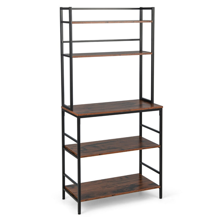 The generous configuration of this unit includes two top-tier shelves and three expansive lower shelves, ensuring every kitchen gadget and tool has its spot. From small appliances to decorative dishware, transform your kitchen into a clean and organized haven.