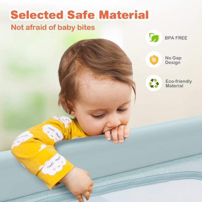 Our commitment to your child's well-being resonates through every element of this playpen. Boasting a robust steel frame wrapped in waterproof Oxford fabric and cushioned with a dense sponge, this playpen is engineered to soften the impact of your little one's inevitable tumbles. Below, sturdy non-slip suction cups anchor the playpen firmly, ensuring peace of mind against tip-overs and unintended shifts.