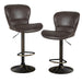 Color: Brown Material: PU Leather, Sponge, Metal Overall Dimensions: 47 x 56 x 93-113 cm (L x W x H) Size of Backrest: 42 x 31 cm (L x H) Size of Seat: 47 x 39 cm (L x W) Height of Seat: 61-81 cm Height of Footrest: 22-42 cm Diameter of Base: 39 cm Suitable Table Height: 101-110 cm Max Load Capacity: 150 kg Net Weight: 14 kg Package Includes: 2 x Bar Height Chairs 1 x User Guide