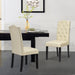 Beauty is in the details, and these dining chairs do not disappoint. Boasting soft hues and a rich fabric texture, the tufted back and tasteful nailhead trim add layers of sophistication and modern charm to any setting. Their smooth contours insist on a timelessly elegant presence, making them a fitting compliment to virtually any interior decor theme.
