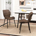 This armless kitchen chair is made of a high-quality metal frame, soft leathaire fabrics and supportive sponge, combining sturdiness and comfort. You may have a meal with your family members for a long time, so the ergonomic dining chair with a spacious seat and an ergonomic wide backrest can help all of you relax completely. In addition, the kitchen side chair is designed with 2 adjustable foot pads, which can make the upholstered dining chair remain stable and not wobble. Therefore, decorate your living space with this versatile and stylish dining chair set. If you are looking for such a product, do not hesitate to buy it! Comfortable Sitting Experience: Equipped with a spacious seat 47 x 39cm (L x W) and an ergonomic backrest, the armless kitchen chair set can ensure long-lasting comfort to enhance your overall dining experience or provide an enjoyable reading and relaxing time. Carefully Selected Materials: The integrative seat cushion and backrest are filled with a thick sponge and covered with premium skin-friendly leathaire fabrics, which ensure a pleasant and comfortable sitting experience for meal times. Plus, the leathaire fabrics are stain resistant, making cleaning a breeze. Provide Outstanding Stability: The 2 wear-resistant front foot pads combined with 2 adjustable rear foot pads can avoid scratches on the floor of your home, offering a sturdy and stable seating solution. Besides, the robust metal frame also provides peace of mind during daily use. Modern Style for All Rooms: The mid-century modern side chairs set can elevate the aesthetics of your living space, such as the kitchen, dining room, or living room, blending seamlessly with various decor styles for a chic and stylish look. Easy to Assemble: Effortlessly put together the dining chairs set of 2 with simple assembly instructions. The installation process is so simple that it can save you time and hassle, so you can enjoy your new stylish seating addition in no time.