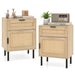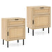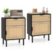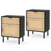 Set of 2 Rattan Nightstand with Drawer and Cabinet and Metal Legs-