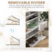 The dynamic adjustable shelving system in each compartment caters to footwear of various sizes and styles, ensuring a perfect fit for everything from casual sneakers to formal heels. The versatility of this unit makes it a valuable addition to any shared space.