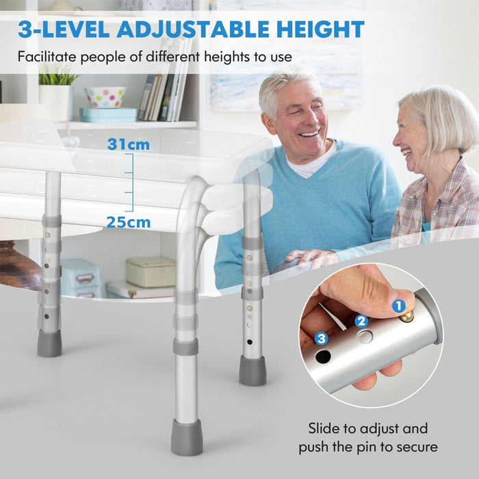 With three simple height adjustments ranging from 26 cm to 31 cm, our shower seat caters to your preference, providing comfort that is tailored to your stature. The intuitive design means adjusting the seat height is a breeze — just slide, set, and lock. Whether you're taller, shorter, or somewhere in-between, you're covered.
