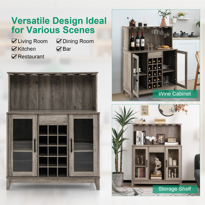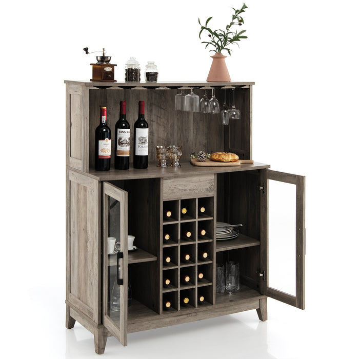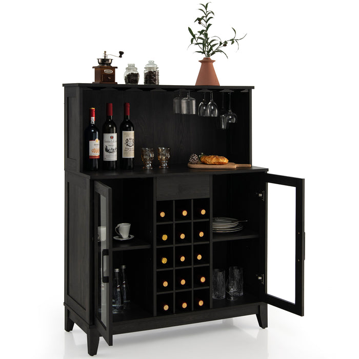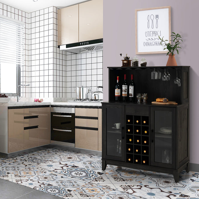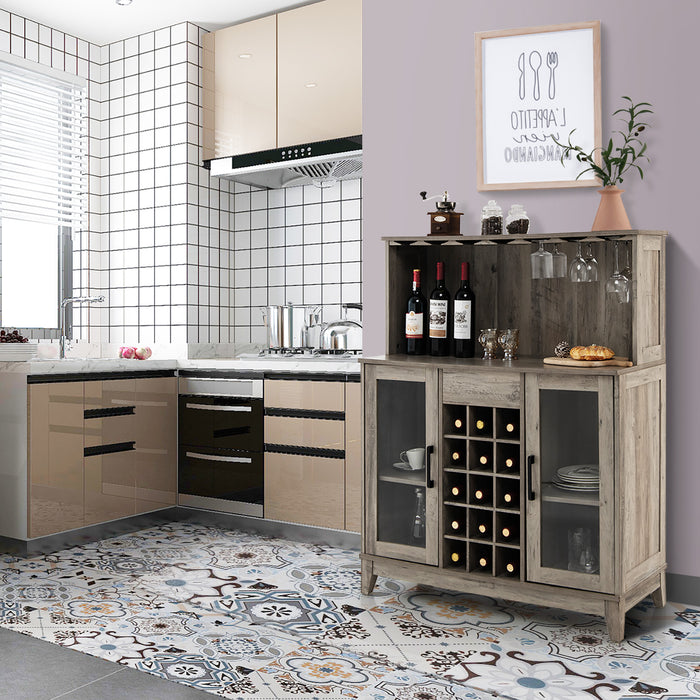 With thoughtful design inclusions such as a top display shelf, roomy countertop surface, and conveniently appointed stemware racks, this sideboard offers a spacious and systematic way to house your daily essentials. The adaptable shelves within the cabinets can be customized in height, ensuring ample, efficient space for items of all sizes.