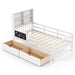 The integrated bookcase and 2 under-bed storage drawers maximize space utilization, making room organization a breeze. This versatile bed is not only a restful place but also a creative space for kids or teens, enhanced by the blackboard feature. Crafted from solid wood and reinforced with sturdy slats, this bed frame offers supreme durability and stability. Designed with an idea of safety, the bed frame features full-length guardrails for peace of mind. It is designed to cater to growing children’s needs but also crafted for longevity. Bullet Point:Creative and Interactive Blackboard: This blackboard serves as a perfect spot for your children to express their creativity through drawing or to jot down important reminders or tasks, blending fun with functionality. Storage Drawers and Bookcase: 2 storage drawers on wheels help you organize clothing, toys, or books easily. Besides, the integrated bookcase encourages organization and easy access to bedtime stories or study materials, fostering a love for reading and learning. Reliable Wooden Construction: Crafted from solid wood frame, the platform bed supports up to 220 kg/300 kg, ensuring stability and durability. Supported by sturdy 10 plywood slats, this bed frame eliminates the need for a box spring while providing a reliable foundation. Safe Full-length Guardrails: Safety is paramount, and this solid wood bed frame is designed with 28 cm full-length guardrails which provide added security for peaceful nights, making it an ideal choice for families. Stylish and Versatile Design: The subtle yet stylish platform bed easily blends into any interior decoration, which is suitable for a range of age groups and bedroom themes. Product Size: 200 x 97 x 120 cm (L x W x H)/200 x 143 x 120 cm (L x W x H)