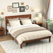 Featuring retro walnut headboard, this bed frame seamlessly blends with various bedroom interiors while ensuring cozy back support. Crafted from high-quality acacia wood, known for its durability and pleasing grain texture, the bed frame boasts sturdy support and long-lasting use. It incorporates strong plywood slat system and middle support legs which evenly distribute weight. Besides, the ample under-bed storage space makes it easy to store items and clean the room. All in all, the platform bed exudes charm and character, adding a touch of nostalgia to any room. Retro Walnut Headboard: The platform bed features a retro walnut headboard that brings a vintage charm to your sleeping space. At 105 cm tall, the headboard offers comfortable back support, making it ideal for reading or lounging in bed. Sturdy Wooden Frame: Mainly crafted of acacia wood, renowned for its strength and longevity, the bed frame is built to last. Paired with 12 reliable plywood slats, the single/king size bed ensures sturdy construction that supports up to 250 kg/300 kg. Optimized Support with Middle Legs: Designed with stability in mind, the additional middle support legs help to evenly distribute weight across the platform. Together with adjustable foot pads, the bed base is a reliable addition to any bedroom. Spacious Under-bed Storage: Utilize the 22 cm of under-bed space to keep your bedroom tidy and organized. The generous clearance between the bed and the floor is perfect for storage and convenient cleaning access. Embedded Platform Design: The slatted bed base ensures a comfortable night’s sleep without the need for a box spring. Additionally, the embedded platform bed aligns seamlessly with mattresses up to 20 cm thick.
