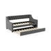 It can not only provide a cozy seating area but also offer a practical solution for accommodating visitors without sacrificing space. Featuring curved armrests, resilient sponge padding, and breathable linen upholstery, this sofa daybed ensures optimal comfort as you lean back and unwind on it. The exquisite button-tufted backrest and nailhead trim details also add a touch of sophistication to your room. Moreover, built with sturdy wood slats for reliable mattress support, the daybed ensures durability and stability for long-term use. Transform your space with our single-size day bed! If you are looking for such a product, do not hesitate to buy it! Versatile Daybed with Trundle: This upholstered daybed serves as a cozy seating area during the day, perfect for relaxing or lounging. With a convenient pull-out trundle, it can also seamlessly transform into an extra sleeping area for overnight guests at night, ideal for limited space. Sophisticated Design: This trundle day bed features a stunning button-tufted backrest and exquisite nailhead trim on the armrests. Whether placed in a living room, bedroom or guest room, this daybed adds a touch of sophistication and elegance to your living space. Comfortable Leaning Experience: With breathable linen upholstery and resilient sponge padding on all sides, this single trundle bed offers a comfortable leaning experience. Additionally, the curved armrests provide ergonomic support for your arms, enhancing your overall relaxation. Reliable Construction: The upholstered daybed frame is built to last, featuring 10 sturdy wood slats on both the daybed and trundle to provide excellent mattress support. The reliable bolted connection and robust support feet also provide added stability and strong load capacity. Simple Assembly and Dimensions: This daybed with trundle is packaged in 2 boxes, containing clear instructions and all the necessary hardware for effortless assembly. Dimensions of Trundle: 189 x 94 x 27 cm (L x W x H). Recommended mattress thickness: 30 cm for daybed, and 13 cm for trundle (No mattress included).