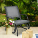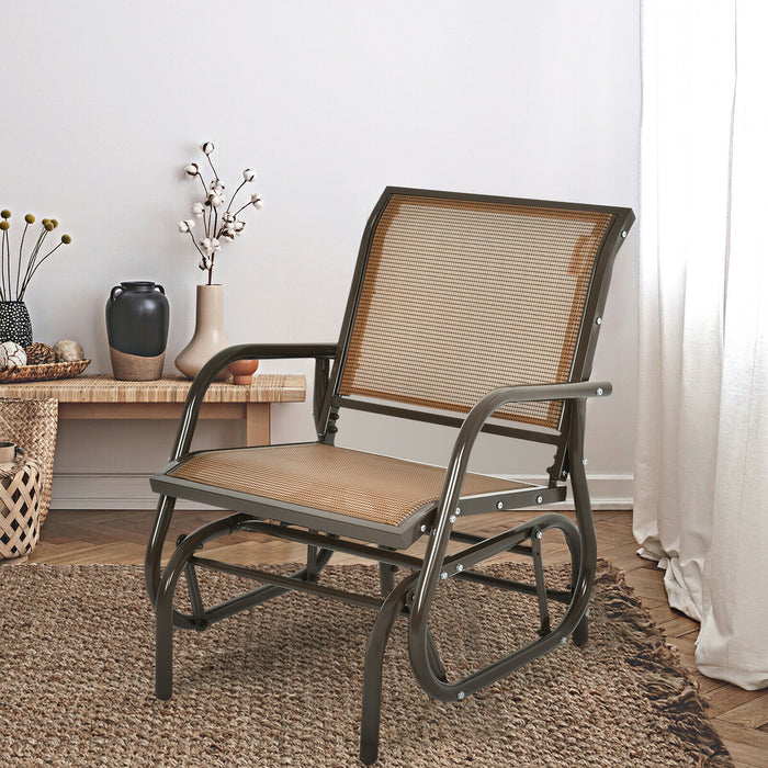 The heavy-duty steel frame of our rocking chair assures long-lasting use, providing a sturdy foundation for your leisure activities. Treated with a powder-coated finish, the frame resists the elements, lowering the risk of damage from wind or rain. This means you can enjoy your outdoor spaces worry-free, with a chair that stands the test of time.