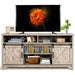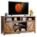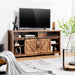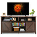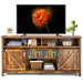 The 150cm countertop can accommodate up to 65-inch flat screen TVs or other decorative items. There are multiple storage compartments under the countertop to help you keep your personal items organized. Two 3-position adjustable shelves allow you to adjust the storage space according to the size of the stored items. In addition, the multiple cable holes enable you to organize the wires of various electronic essentials in an orderly manner. What’s more, the extra support plate add stability and make this storage cabinet stand stably. Bullet Point:150cm Tabletop for Flat Screens up to 65”: The tabletop of the entertainment center cabinet measures 160cm long and accommodates flat screens up to 65-inch. Besides, it’s also spacious enough for other ornaments, like vases and pictures. Sturdy tabletop can hold up to 100kg, allowing you to arrange the space as you like. Customizable Storage Space with Cable Holes: The TV stand offers ample storage space to accommodate all your electronic essentials. In addition to 4 fixed compartments, there are also 5 position adjustable shelves for different sized items. Besides, the cable holes help you hide unsightly wires for a tidy look. Sliding Barn Door Design: The TV console cabinet features sliding barn door design, which makes up a farmhouse look and provides concealed space for your private items. Meanwhile, the premium metal fittings, including the track and the pulley, ensure smooth sliding. So, you can easily put in or take out items. Durable Material and Sturdy Construction: This TV stand is crafted from premium engineered wood and is constructed in a stable structure, so as to ensure excellent sturdiness and durability. Besides, there is an extra support plate at the bottom to improve overall stability, making it not likely to shake or wobble. Versatile Cabinet for Different Purposes: With an industrial and rustic look, the media console cabinet can blend into different room decorations. Meanwhile, it functions well to fit your display and storage needs. Therefore, it can be used as a TV cabinet or a normal storage cabinet, placed in the living room, bedroom or hallway.