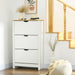 The cabinet's dimensions are thoughtfully balanced to offer maximum storage while maintaining a sleek profile. The measurements stand at 112H x 72L x 26D cm, providing a harmonious fit in a variety of spaces. Each drawer's inner size measures 29.5H x 57L x 22D cm, paired with a robust top panel that's 1.5H x 72L x 26D cm. Kindly note, some assembly will be required to set up this cabinet.