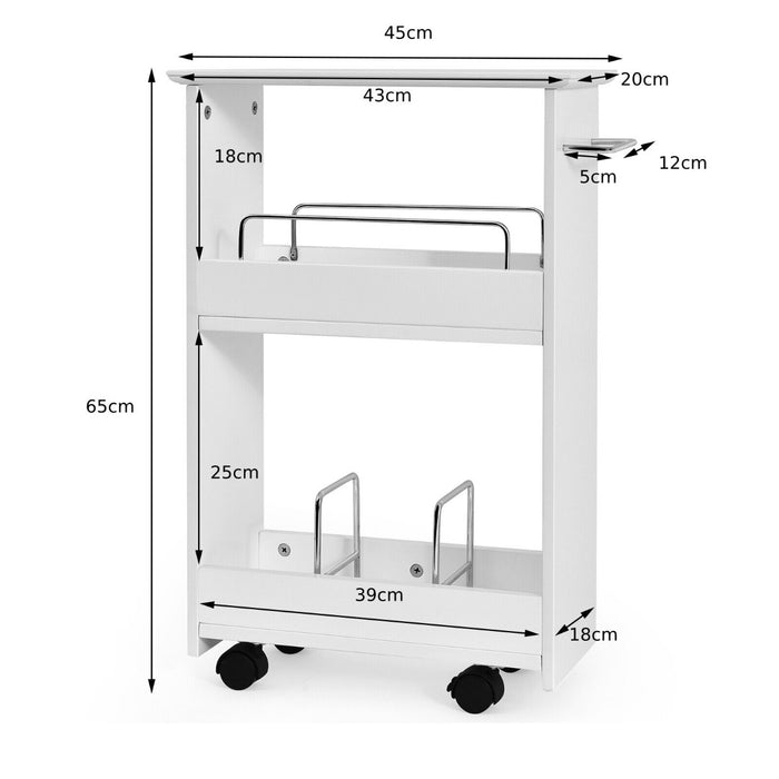 Narrow in design yet abundant in storage capacity, our rolling cart cleverly utilizes minimal floor space. Flaunting an elegant and contemporary design, this versatile trolley blends seamlessly into a variety of settings from bathrooms to kitchens, and any other area where storage is imperative.