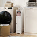 This slim toilet paper cabinet is ideal for fitting into tight corners. For storage convenience, the multifunctional cabinet features a top and middle compartment for easy access to frequently used items, and an enclosed cabinet that hides away clutter. Moreover, 2 adjustable shelves offer flexibility in storing items of varying sizes, from towels to toiletries. Designed with stability in mind, the bathroom storage cabinet includes an anti-toppling device. All in all, this freestanding storage organizer meets your needs with efficiency and style. Bullet Point: Fit for Narrow Space: This narrow bathroom cabinet, measuring 18 x 19 x 80 cm(L x W x H), is crafted to fit snugly in corners or beside your toilet. Additionally, it offers practical storage without occupying too much floor space. Open and Enclosed Storage: The corner floor cabinet features a top area and middle compartment for easy access to toiletries, towels or shampoo. Below, the single door cabinet allows for the storage of spare toilet paper and extra bathroom supplies. Adjustable Shelves: 2 shelves in the cabinet can be adjusted in 3cm, allowing you to customize the interior space for storing items of different sizes. Whether you need to store taller bottles or small items, the adjustable shelves offer versatility and flexibility. No Tipping Over: For increased safety and stability, the anti-toppling device securely anchors the toilet paper cabinet to the wall. The thickened base provides a sturdy foundation, enhancing durability and reliability. Versatile Usage: Not just for bathroom, the compact storage organizer is suitable for living room, entryway and bedroom. Its simple yet elegant appearance integrates seamlessly with different home styles.