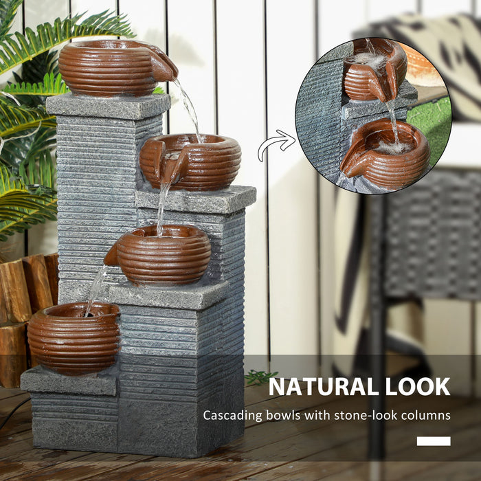 Our meticulously crafted fountain mirrors the raw essence of nature with bowls resembling natural stone. Whether you're looking to augment a rustic garden theme or bring a sense of Zen to your balcony, its presence is a beautiful nod to the great outdoors.