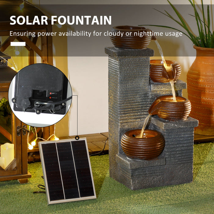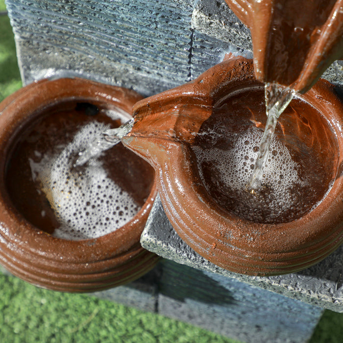 Dusk falls, but the magic doesn't fade. The integrated LED lights nestled within the three different levels of our garden masterpiece artfully highlight the cascading waters, creating an inviting and mystical aura. Be prepared to be mesmerized by the water dance that takes place as it flows from tier to tier, illuminated for all to see.