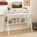 Elevate your workspace with this small desk, designed for optimal functionality in limited spaces. Featuring a sturdy R-shaped metal frame, the computer desk ensures exceptional stability and durability. The ergonomic monitor shelf promotes better posture, reducing neck strain during long hours of use. Enjoy ample storage options, including a lower shelf for books and a convenient hook for headphones. Space-saving design with a wide enough tabletop for various occasions ensures you can utilize it for studying, working, or crafting. Stylish and functional, this versatile desk seamlessly enhances any room, making it the perfect addition to your home office, bedroom, or dorm. Space-Saving and Compact Design: This small, compact desk optimizes your workspace with a minimal footprint. It is perfect for limited areas in your home office, bedroom, or dorm room while providing ample functionality. Ergonomic Monitor Shelf: The study desk is designed with a monitor stand, which help raise the screen to your eye level. In this way, it is supposed to promote better posture and reduce neck strain during long hours of work or study, enabling a comfortable and productive state. Sturdy R-shaped Metal Frame: Built with a robust R-shaped metal frame, the writing desk ensures exceptional stability and durability, easily supporting your work or gaming equipment. The adjustable foot pads keep the table stable on uneven surfaces. Ample Storage Options: In addition to the wide tabletop, which includes a shelf to keep your workspace organized, the computer desk features a lower shelf for additional storage of books and a practical hook for headphones or accessories. The earphone hook can be removed or installed on either side of the desk. Versatile Design with Wide Tabletop: Designed for versatile usage, the home office desk is perfect for studying, working, or even applying makeup. The wide enough tabletop accommodates various tasks, making it a stylish and functional addition to any room.