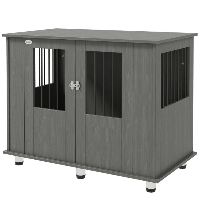 Crafted from robust materials, this dog crate boasts a solid structure without compromising its visual appeal. The dependable construction ensures durability and resilience while maintaining an aesthetically pleasing appearance that complements your home décor.