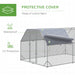 The enclosure measures a generous 195H x 280W x 190D cm, with an eave height at 115cm, providing ample vertical space for carefree movement. The protective cover spans 350L x 190W cm, and the door measures 165H x 60W cm. Note that assembly is required to set up your new pet oasis.