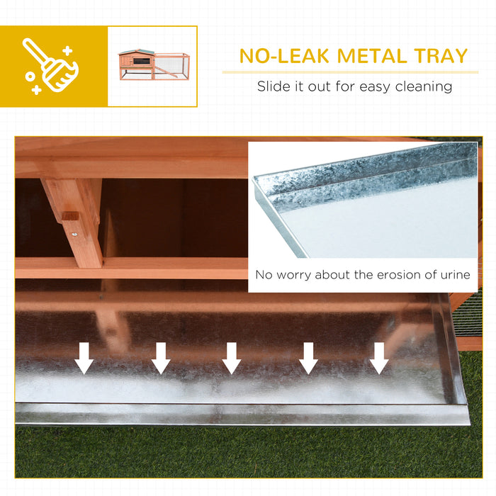 Our habitat is crafted with care and responsibility, featuring a robust natural wood frame. The quality build ensures stability and long-lasting durability, providing a secure and safe home for your pets. The structure is finished with a stylish paint coating which, when combined with the tilt, waterproof roofing, offers maximum protection against the unpredictable weather. Give your pets a fortress that stands the test of time.
