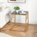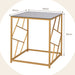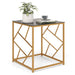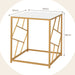 With its geometric golden frame, the side table exudes a modern charm that integrates effortlessly into your home's decor. The sleek lines and metallic luster combine to create a look that is both trendy and timeless, ensuring it will be the highlight of any room.