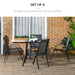 Each chair is supported by a robust steel frame with a powder-coated finish that promises strength and durability, ensuring that your garden set withstands the elements and the test of time. Meanwhile, the foot pads offer additional protection, keeping your floors scratch-free.
