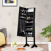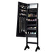 This is exactly the utility and beauty go together jewellery cabinet you are looking for! Made of superior MDF material, this jewellery is environmentally friendly that you can rest assured to use. It comes with support stands that allows it to be placed or moved wherever you want. And the angle of the cabinet body can be slightly adjusted. Its most shining feature is the 18 led lights that make jewels look more sparkling and the jewellery cabinet more precious. It also has a full-length mirror, powerful internal organization and storage function, whatever you want for a jewellery cabinet, it’s there. In addition, there is a small mirror inside the jewellery cabinet to facilitate you to match jewellery. Is that a friendly design you like? If you are looking for a jewellery cabinet with lights, take a look at our this 18 LEDs jewellery cabinet. The exquisite appearance that goes well with any décor Sturdy and durable structure built with superior MDF material Floor standing design with stands that can be slightly adjusted in angle Holes to provide a ton of space for all sorts of various styles of jewellery 18 battery-powered LED lights (battery not included) for soft lighting at night Soft velvet lining inside to reduce scratches on jewellery as well as air oxidation An extra small mirror inside the jewellery cabinet to facilitate you to match jewellery Glass full-length mirror to provide you with a clear head-to-toe view which is perfect for daily makeup routine